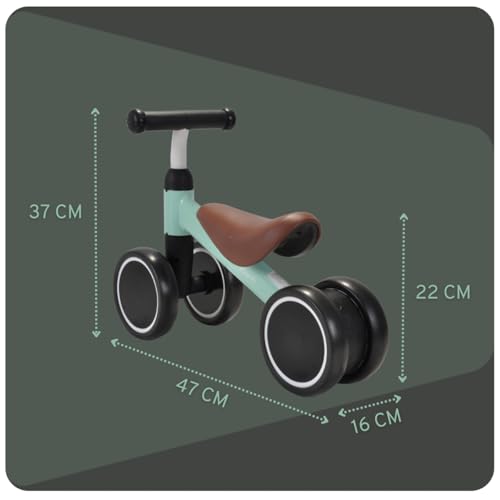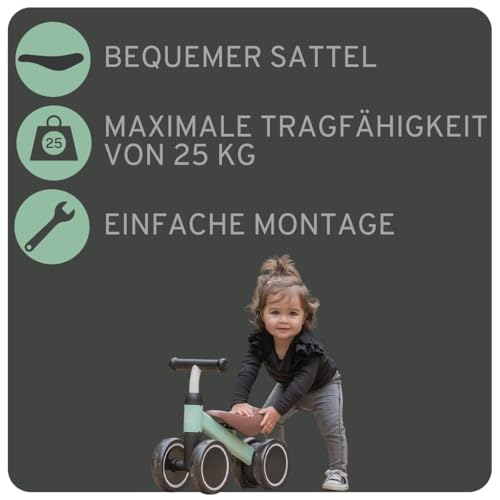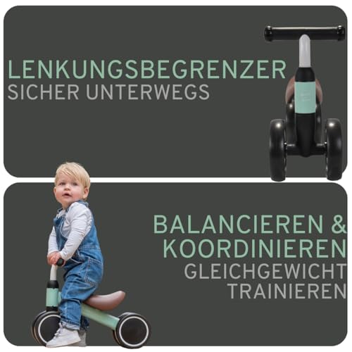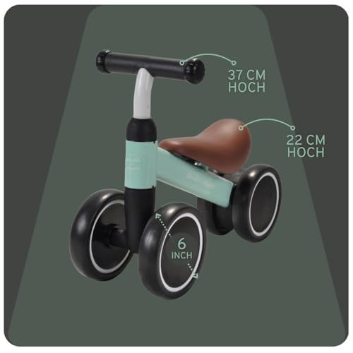 | Features | STABILES VIERRAD – Dieses Laufrad von Bandits & Angels verfügt über vier Räder für zusätzliche Stabilität, perfekt als Einsteigerrad., GEEIGNET AB 1 JAHR – Konzipiert für die Kleinsten, mit einer Sitzhöhe von 22 cm und einer Lenkerhöhe von 37 cm., GERÄUSCHARME RÄDER – Ideal für drinnen und draußen, die Räder sind leise und leichtgängig auf verschiedenen Oberflächen., LENKBEGRENZER FÜR SICHERHEIT – Verhindert Übersteuern für sichere Fahrten., HOCHWERTIGES DESIGN – Stilvoll und attraktiv, ein tolles erstes Fahrrad für kleine Kinder. |
