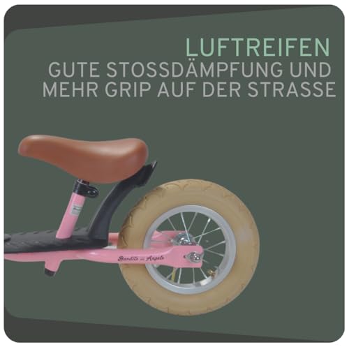 Das Bandits & Angels Laufrad im Retro-Design begeistert sowohl Kinder als auch Eltern mit seiner ansprechenden Optik und durchdachten Funktionalität. Dieses Laufrad ist ideal für kleine Entdecker ab 2 Jahren, die das Spielen und Fahren im Freien lieben, und fördert gleichzeitig die motorischen Fähigkeiten des Kindes.