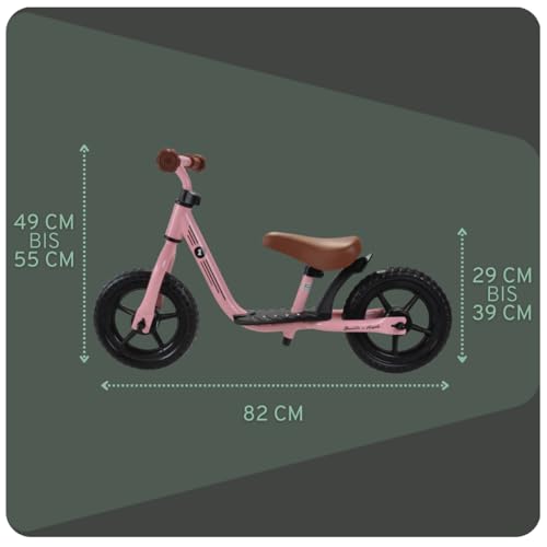 | Features | NIEDERIGER EINSTIEG UND TRITTBRETT: Perfekt für Kinder ab 2 Jahren, um sicher einzusteigen und bequem zu fahren., WÄCHST MIT: Verstellbarer Sattel (29–39 cm) und Lenker (49–55 cm) für jahrelangen Spaß., WARTUNGSFREIE PU-REIFEN: Pannenfrei und immer einsatzbereit, ideal für jeden Untergrund., ROBUSTES UND STILVOLLES DESIGN: Mit blauem Metallrahmen, braunem Sattel und Sicherheitsgriffen., INKLUSIVE LENKERKORB AUS WEIDE: Eine charmante und praktische Ergänzung für kleine Abenteurer. |