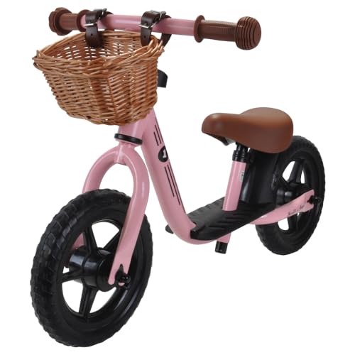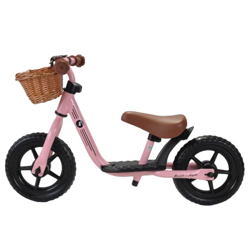 Bandits & Angels Laufrad aus Metall mit Weidenkorb Vintage rosa ab 2 Jahren – Lauflernrad – Verstellbarer Sattel 29 bis 39 cm – für Jungen und Mädchen – niedriger Einstieg mit Trittbrett