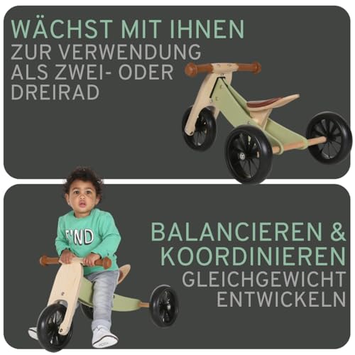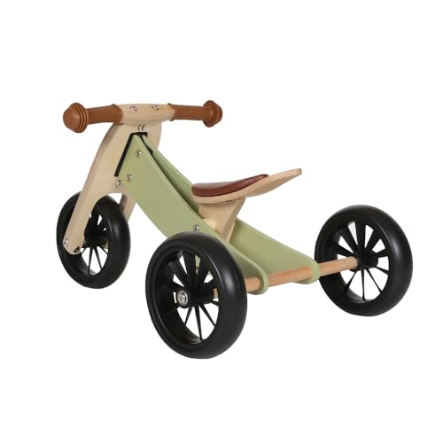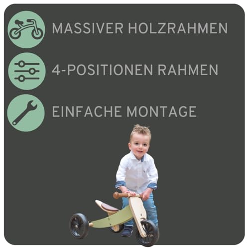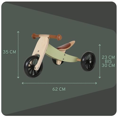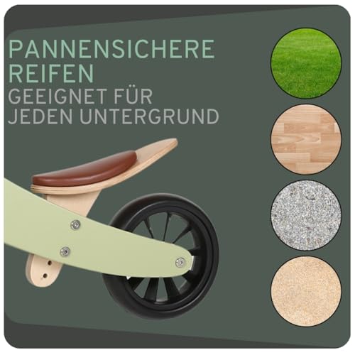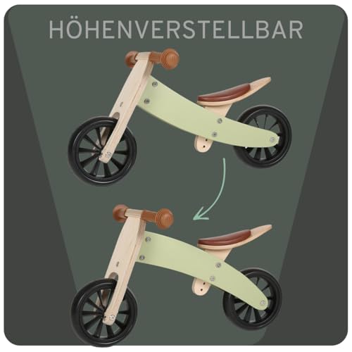 Bandits & Angels Smart Bike Laufrad Holz 4-in-1 Retro Grün ab 1 Jahr – Für Jungen und Mädchen – Laufrad aus Holz – Umkehrbar in Dreirad und Zweirad – Verstellbarer Sattel