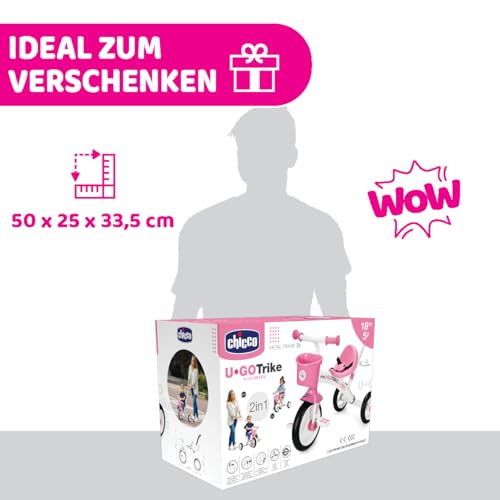 Chicco U-GO 2in1 Kinderdreirad, Dreirad für Mädchen und Jungen mit höhenverstellbarem Griff, Sicherheitsgurt und Ablagekorb, Max 20 kg, Kinderspielzeug ab 18 Monaten bis 5 Jahren