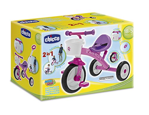 | Features | U-GO 2IN1 DREIRAD: Dreirad mit Teleskopgriff in sportlichem und modernem Design, ausgestattet mit bequemem Sitz, widerstandsfähigem Metallrahmen und großem Ablagekorb. 2 Nutzungsmodi, TELESKOPGRIFF: Der Teleskopgriff ist je nach Körpergröße des Erwachsenen in drei Positionen einstellbar, um die Kinder bei ihren ersten Erfahrungen zu führen, PUSH-AND-GO: Das Kleinkind-Dreirad mit einem höhenverstellbaren Teleskopgriff passt sich der Körpergröße der Eltern an und lässt sich so leicht schieben, FREE-PEDALLING: Durch Entfernen des Griffs können die Kinder frei in die Pedale treten und die Welt um sie herum erkunden, SICHER: Das Chicco U-GO Dreirad ist mit einem Sicherheitsgurt, Pedalen mit An- und Ausschaltsperre und einer Lenkungsverriegelung ausgestattet, GUMMI-RÄDER: U-GO hat einen guten Grip auf allen Oberflächen und ist dank der weichen, pannensicheren Gummiräder bequem zu fahren |