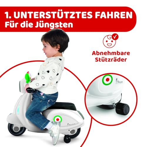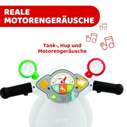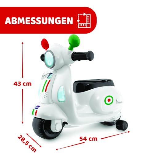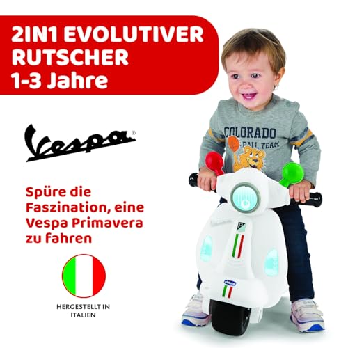 Chicco Motorrad Rutscher für Kinder Vespa Primavera, Kinderfahrzeug mit Elektronischem Bedienfeld, Lichtern und Geräuschen, Abnehmbare Stützräder, Max 25 kg, Kinderspielzeug von 1-3 Jahren