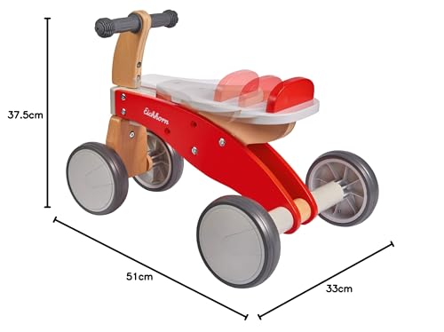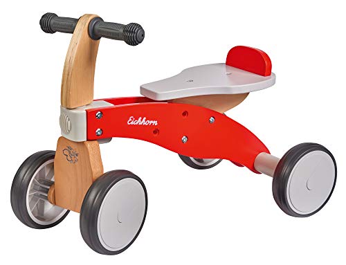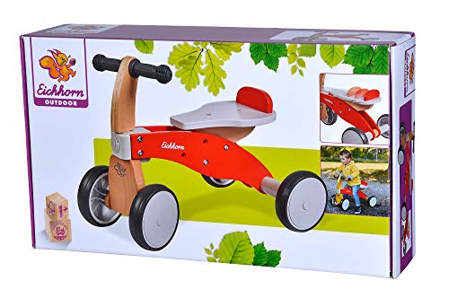 | Features | Robustes Rutschfahrzeug – das Laufrad in moderner Optik ist aus hochwertigem Holz gefertigt und lädt Kinder zu spannenden Fahrten und Ausflügen ein. Mit einer Sitzhöhe von 24cm können die Kleinen bequem Platz nehmen., Verstellbarer Sitz – der Sitz des Fahrzeuges lässt sich leicht verstellen und kann auf die Größe des eigenen Kindes angepasst werden. Somit ist es über mehrere Jahre im Einsatz und ideal für Kinder von 1-3 Jahren., Stabil – das Laufrad rollt stabil auf vier Rädern und bietet Kindern die nötige Sicherheit. Es hat eine Größe von 51x33x37,5cm und ist maximal bis 50kg belastbar., Aus Buchenholz – das Rutschfahrzeug ist aus Buchenholz gefertigt. Für die Farbgebung verwenden wir ausschließlich wasserbasierende Farben die unbedenklich sind. Sämtliche Holzspielwaren werden zudem regelmäßig durch unabhängige Prüfinstitute getestet., Eichhorn – Holzspielzeug mit Tradition – seit über 70 Jahren fertigen wir Qualitäts-Holzspielzeug. Pädagogisch wertvoll fördern unsere Produkte durch Kombination von Fühlen, Stapeln, Stecken, Schieben und Schrauben die Motorik und Kreativität vom frühesten Kindesalter an. |