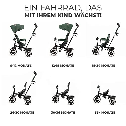 Kinderkraft ASTON Dreirad ab 9 Monate bis 25 kg, Kinderdreirad mit schubstange, drehbarer Sitz Vorwärts und Rückwärtsfahrt, ausklappbarem Verdeck mit sonnenschutz, Getränkehalter korb im set, Grün