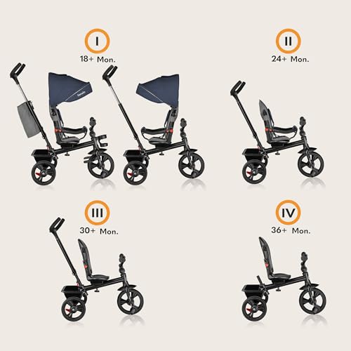 Außerdem erfüllt das Dreirad die europäischen Sicherheitsnormen EN 71, was den Eltern zusätzliches Vertrauen in die Sicherheit des Produkts gibt. Die reflektierenden Elemente auf dem Verdeck verbessern die Sichtbarkeit im Straßenverkehr, was besonders vorteilhaft ist, wenn du mit deinem Kind bei schwachem Licht unterwegs bist.