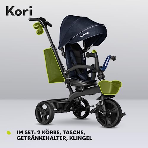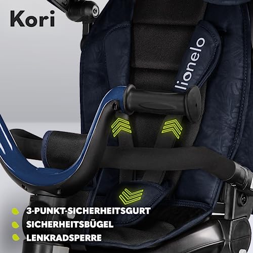 Lionelo Kori Dreirad mit Schubstange für Kinder ab 1,5 bis 5 Jahre, drehbarer Sitz, Magnesium-Rahmen, wartungsfreie Gummiräder, freies Rad, abnehmbares Vordach, 55 x 80 x 56 cm