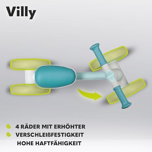 | Features | SICHERES FAHREN: dank seiner 4 Räder ist das Villy-Geländefahrrad stabil und bequem zu fahren Räder aus einer Kombination von EVA-Schaum und TPR-Kunststoff für hohe Griffigkeit und Verschleißfestigkeit. Ein 70-Grad-Drehbegrenzer verhindert Stürze, die durch zu starkes Drehen verursacht werden., FÜR ANFÄNGER: Laufrad eignet sich für Kinder ab 1 bis 3 Jahre alt bis maximales Gewicht 30 kg. Die Höhe des Sattels vom Boden beträgt 26 cm. Das Laufradfahren wirkt sich positiv auf die Entwicklung der motorischen Fähigkeiten des Kleinkindes aus, verbessert die Koordination und schult das Gleichgewicht von klein auf., KOMFORT: das ergonomische Design des Kinderlaufrad ist gut an die Körperproportionen des Kindes angepasst. weicher, bequemer Sitz mit doppelter Polsterung und Dämpfung an der Vorderseite für eine komfortable Fahrt. Rutschfeste Griffe mit einer sich zur Mitte hin verjüngenden Form verstärken den richtigen Griff und entwickeln Gewohnheiten, LEICHT: Kinderlaufrad hat eine sehr leichte Konstruktion (2,1 kg) und kann leicht mitgenommen werden. Der Zusammenbau des Laufrads ist sehr intuitiv und dauert nur wenige Augenblick Verfügbar in 3 Farben. Kinderlaufrad ist das perfekte Geschenk für jedes Kleinkind, LEICHTE REINIGUNG: wenn es beim Spielen schmutzig wird, kann das Laufrad leicht mit einem feuchten Tuch gereinigt werden |