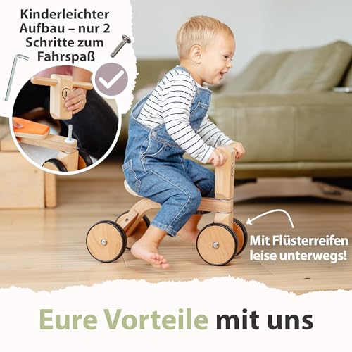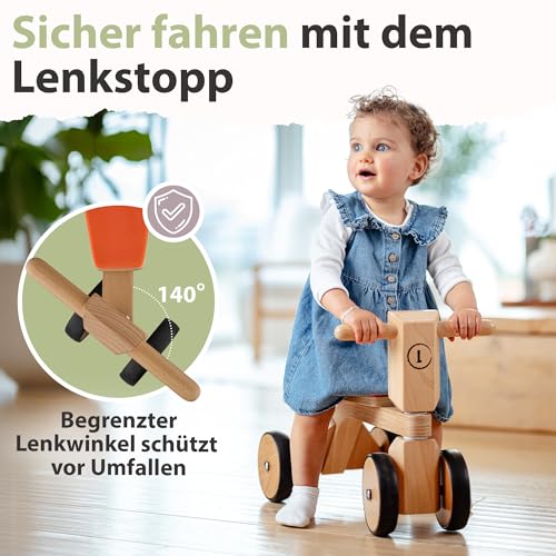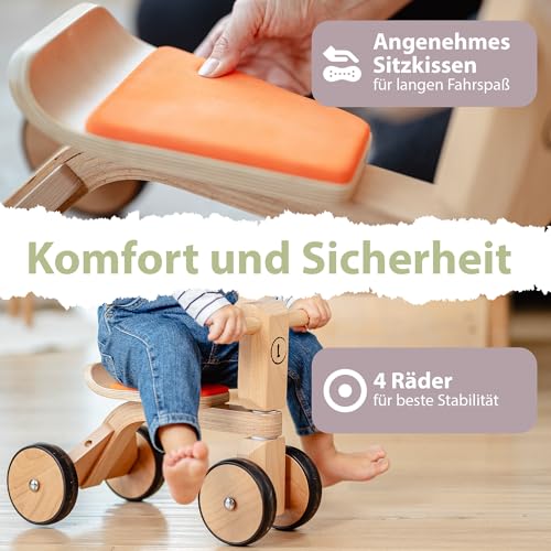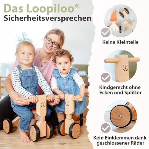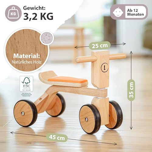 LOOPILOO Kinder Laufrad ab 1 Jahr bis 15kg [Farbe Orange] [Spielzeug aus FSC® Holz] [Indoor & Outdoor] [Geschenk Baby Jungs & Mädchen] Rutschauto Lauflernrad Kids Toys – Ihr Kind jetzt fördern!