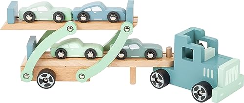 Der small foot Autotransporter Chicago aus Holz bringt großen Spielspaß! Mit abnehmbarem Anhänger, beweglicher Laderampe und vier Sportwagen eignet er sich perfekt für kleine Entdecker und fördert kreatives Spielen. Ideal für Kinder ab 3 Jahren.