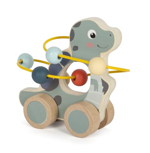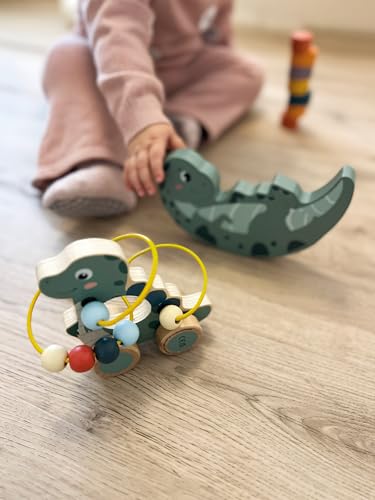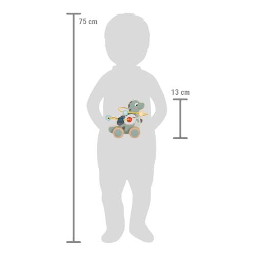 | Features | FSC 100%: Dieses Produkt besteht vollständig aus Holz aus FSC-zertifizierten Wäldern, Robustes Holz-Schiebespielzeug im niedlichen Dino-Design mit integrierter Motorikschleife, Motorikschleife mit sechs bunten Holzkugeln zum Schieben, ideal zur Förderung der motorischen Fähigkeiten, Mit leichtgängigen Rollen für spannende Ausflüge im Kinderzimmer, ca. 15 x 6,5 x 13 cm |